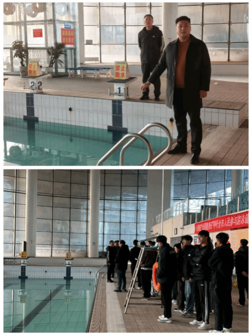 本次游泳馆参观学习活动,由体育系主任宋贺华、党支部书记李鑫、副主任张红刚,以及辅导员李占国、杨阳老师共同带队,带领学生们进行参观。